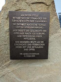 Gedenkstein am Standort der ehemaligen Synagoge in Gilserberg am 21. März 2024