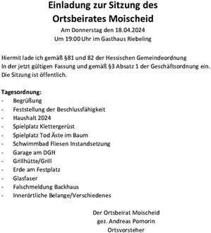 Hiermit lade ich gemäß §81 und 82 der Hessischen Gemeindeordnung