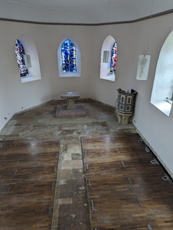 Kirche in Gilserberg während der Innenarbeiten, Mitte Mai. Der erste Gottesdienst nach der Renovierung ist die Konfirmationsfeier am 9. Juni.