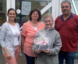 Frau Erste Beigeordnete Sigrid Herden, Frau Anja Lecher vom Personalrat und Bernd Mattheis bedankten sich im Namen aller Mitarbeiterinnen und Mitarbeitern bei Frau Jessica Steiger für das erfolgreich abgeschlossene FOS-Jahrespraktikum bei der Gemeindeverwaltung Gilserberg. Verbunden mit den besten Wünschen für die Zukunft und den Dank für das Interesse an den vielfältigen Tätigkeiten und die tatkräftige Unterstützung in der Gemeindeverwaltung wurde Frau Steiger zum Abschied ein kleines Präsent überreicht.