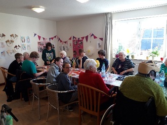 Im September haben die Konfis aus den Kirchspielen Lischeid und Sebbeterode die Kikra besucht. Zusammen mit den Bewohnerinnen kamen sie über Alltägliches, aber auch über das Thema Nächstenliebe ins Gespräch und gestalteten dazu mit Hilfe des Personals ein Plakat.