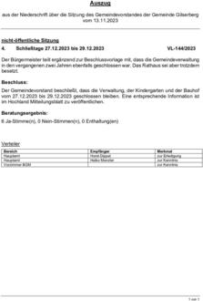Auszug aus der Niederschrift über die Sitzung des Gemeindevorstandes der Gemeinde Gilserberg vom 13.11.2023