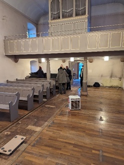 Dazu musste die Kirche leergeräumt werden und am Dienstag, den 23. Januar war dazu eingeladen worden. In kürzester Zeit konnte mit vielen Helfern die Kirche geleert werden und alle Bänke, Stühle, Pulte, Tische etc. wurden im ehemaligen Stallgebäude des Ehepaares Maurer in der Nachbarschaft gebracht.