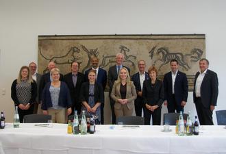 Mitglieder der EuRegio, darunter Landrat Dr. Theophil Gallo (1. v. r.) und Dr. Violetta Frys, Europabeauftragte des Saarpfalz-Kreises (5. v. r.), bei der Verwaltungsratssitzung der EuRegio in Trier am 30. September 2021.
