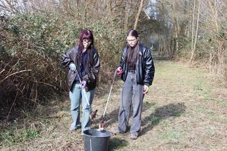 Die fleißigen Föjlerinnen Kimberly Müller und Lara Wächter (von links) im Einsatz gegen Müll.