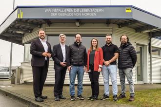 Grund genug also für unseren Bürgermeister Dominik Hochlenert und Hauptamtsleiter Dirk Pfeifer, Viega in der neuen Heimat persönlich zu begrüßen. Im Gespräch mit Werkleiter Benjamin Schneider, dem Personalleiter Europa Stefan Tofote und der Personalverantwortlichen von Viega in Kirkel, Anna Scherer, machte sich unsere Verwaltungsspitze ein Bild davon, was nun in der nächsten Zeit in der früheren Michelin-Halle im Industriegebiet Zunderbaum entstehen wird. Und das wird sich sehen lassen können: In Zeiten, in denen es für die Industrie im Saarland nicht einfach ist, wird hier Zukunft erschaffen.