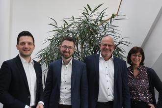 V.l.n.r.: Sebastian Greiber (Aufsichtsratsvorsitzender eGo-Saar), Christophe Boutter und Stephan Thul (Geschäftsführung eGo-Saar), Daniela Schlegel-Friedrich (Verbandsvorsitzende eGo-Saar).