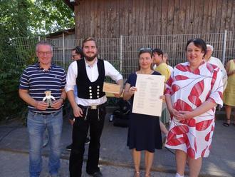 Dipl. Ing., Matthias Albert, und Frau Anna-Katharina Mathieu vom Planungsbüro C3 modulbauArt freuten sich über die erfolgreiche Realisierung des Projekts.