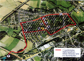 Zur besseren Orientierung ist in dem nachfolgend abgedruckten Plan die Laufstrecke (roter Breitstrich) und der gesperrte Innerortsbereich (schwarze Schraffur) gekennzeichnet.