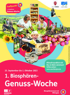 So können Groß und Klein beispielsweise an einem Biosphären-Kochkurs teilnehmen, zahlreiche Veranstaltungen in der Gastronomie besuchen, in die Zeit der Kelten und Römer eintauchen, die Kräuter der Region kennen und genießen lernen, mehr über Fossilien erfahren oder aber mit den Produzentinnen und Produzenten auf dem Biosphärenmarkt ins Gespräch kommen.