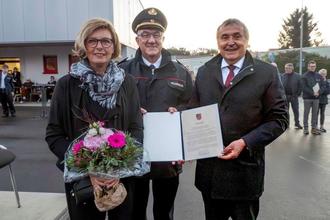 Viele Gäste zollten ihm Dank und Anerkennung für seine erbrachten Leistungen - angefangen bei Innenminister Reinhold Jost für die Landesregierung, Landrat Dr. Theophil Gallo, seinem Vorgänger im Amt Clemens Lindemann, Bürgermeister und designiertem Landrat Frank John für den Kreis und die Gemeinde. Feuerwehr-Angehörige wie Heiko Holler, Amtsleiter der Berufsfeuerwehr Heidelberg, Landesbrandinspekteur Timo Meyer, der Präsident des Landesfeuerwehrverbandes Manfred Rippel, frühere und die aktuellen Wehrführer mitsamt den vielen anwesenden Feuerwehrfrauen und -männern brachten mit ihrem Kommen ihre besondere Anerkennung zum Ausdruck. Die Verleihung des goldenen Ehrenzeichens als Steckkeuz - der höchsten Auszeichnung, die es für Feuerwehrangehörige im Saarland gibt, durch Innenminister Reinhold Jost und der anschließende große Zapfenstreich mit Fackelzug und Feuerwehr-Ehrenformation bildeten die feierlichen Höhepunkte dieses außergewöhnlichen Abschiedsabends.