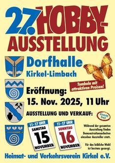 Der Heimat- und Verkehrsverein Kirkel e. V. lädt am 15. und 16. November 2025 herzlich zur 27. Kirkeler Hobbyausstellung in die Dorfhalle in Kirkel-Limbach ein.