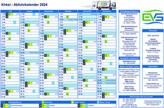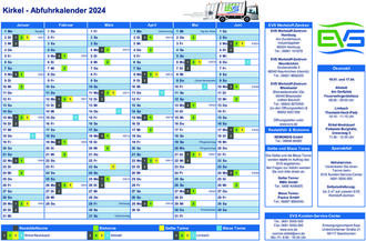 In dieser Ausgabe der Kirkeler Nachrichten wird der Abfuhrkalender für das Jahr 2024 abgedruckt. Den Abfuhrkalender finden Sie auch als Download unter www.evs.de/abfuhrtermine.