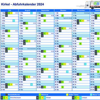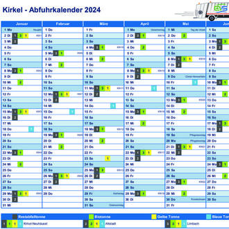 In dieser Ausgabe der Kirkeler Nachrichten wird der Abfuhrkalender für das Jahr 2024 abgedruckt. Den Abfuhrkalender finden Sie auch als Download unter www.evs.de/abfuhrtermine.