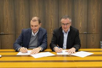 Dr. Ulli Meyer und Frank John unterzeichnen den Kooperationsvertrag
