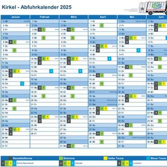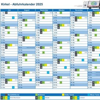 In dieser Ausgabe der Kirkeler Nachrichten wird der Abfuhrkalender für das Jahr 2025 abgedruckt. Den Abfuhrkalender finden Sie auch als Download unter www.evs.de/abfuhrtermine. Dort besteht die Möglichkeit den Abfuhrkalender individuell mit den jeweiligen Abfuhrterminen für den einzelnen Ortsteil zu erstellen.
