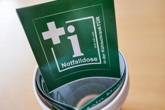 Notfalldose, Notfallausweis sowie Notfallmappe bei der Gemeinde Kirkel im Sozialbüro erhältlich