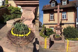 Wegen der Baumaßnahmen an der Kirche, haben die LandFrauen dieses Jahr das Wegekreuz zum Seligmacher mit viel Liebe für Ostern geschmückt. Das Schöne am Frühling ist, dass im Licht der Ostersonne die Geheimnisse der Erde ein anderes Licht bekommen.