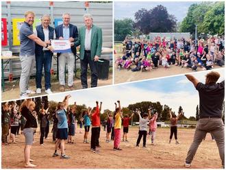 Zum Schulfest erhielt die Grundschule Siebeldingen vom Präsidenten des Landessportbundes Rudolf Storck die Auszeichnung „Partnerschule Bewegung, Spiel und Sport“. Mit dieser Auszeichnung zertifiziert der Landessportbund und das Bildungsministerium Schulen, die einen besonderen Wert auf einen bewegten Schulalltag und Sport legen. Storck versicherte sich mit den Fragen - Habt ihr Lust auf Bewegung? Habt ihr Lust auf Spiel? Habt ihr Lust auf Sport? - dann auch vor der Verleihung nochmal, ob er hier denn auch richtig sei, ließ sich dann aber vom donnernden „Ja!“ der Schülerschaft schnell überzeugen.