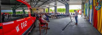 Apropos Fahrzeuge: Neben dem Gebäude bekommt die Einheit ein neues Mannschaftstransportfahrzeug, welches am Samstag ebenfalls gesegnet wurde. Der evangelische Pfarrer Dr. Stefan Bauer und sein katholischer Kollege Martin Dyjecinski weihten Haus und Auto feierlich: „Dies ist ein Haus, was für Hilfe und Rettung, aber besonders für persönliches Engagement von Menschen steht!“, so Pfarrer Bauer. Dyjecinski ergänzte: „Ich würde gerne in jedem Menschen ein so großes Herz sehen, wie es alle Feuerwehrleute haben!“