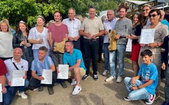 Das Weingut Alfons Hormuth aus St. Martin hat bei der Publikumsverkostung mit seinem 2022er Weißburgunder „Expression“ eindeutig den Geschmack der Weinliebhaber getroffen - erneut, denn er war auch der Publikumssieger beim letzten Wettbewerb. Landrat Dietmar Seefeldt überreichte dem strahlenden Gewinner seine Trophäe: Als Wanderpokal eine Skulptur aus Kalmit-Kalkstein. Die Trophäen sind Werke des Rodalbener Künstlers Stefan Müller, gefertigt aus Kalksteinen der Kleinen Kalmit, zeigen die Arbeit im Weinberg und im Keller. Jedes Jahr, wenn die Pokale zum Kalmitfest zusammenkommen, bilden sie eine Einheit, die zeigt, dass ein perfekter Wein nur unter Achtung der Natur und mit größtem Sachverstand in Weinberg und Keller entstehen kann.