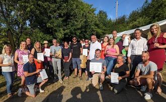 Die Ehrengäste Laura Götze, Pfälzische Weinprinzessin, Sarah Eid, Weinprinzessin Südliche Weinstraße, Paula Schimpf, Weinprinzessin Landau-Land und Peter Jean, Ortsbürgermeister Ilbesheim, überreichten die Urkunden und gratulierten den Finalisten zu ihren hervorragenden Leistungen.