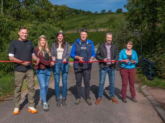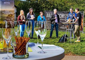 „Wandern ist neben dem Wein einer der wesentlichen Gründe für Gäste, hier bei uns Urlaub zu machen. Deshalb war uns wichtig, dieses touristische Angebot qualitativ zu verbessern“, erläuterte Verbandsbürgermeister Torsten Blank, zugleich 1. Vorsitzender des Vereins SÜW. Rund 100 Gäste und Wanderbegeisterte waren am Sonntagvormittag zur Feierstunde am Sonnenplätzel in Leinsweiler gekommen, um beim ersten Landau-Land-Wandertag dabei zu sein. Einem, dem das Thema Wandern auch beruflich am Herzen liegt, ist SWR-Moderator Holger Wienpahl: Er war gekommen, um bei der Eröffnung im Gespräch mit Torsten Blank, Tourismusgeschäftsführerin Nicola Bock und dem Chef der „Pfalz.Touristik“ Tobias Kauf die Bedeutung des Themas Wandern für die Region zu erörtern. Auch die beiden Weinprinzessinnen Tina Stübinger, Landau-Land, und Susana Singer, Südliche Weinstraße, plauderten mit dem SWR-Wanderexperten über ihre Wandererlebnisse in der Pfalz, ehe sie das rote Band durchschnitten und die Wege damit symbolisch freigaben.
