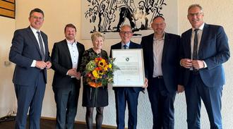Die finanzielle Konsolidierung der Gemeinde, sein eiserner Sparwille und damit die Zurückerlangung von finanziellen und politischen Gestaltungsmöglichkeiten für Ranschbach, zählen zu den großen Verdiensten von Hubert Scherthan und zogen sich fast wie ein roter Faden durch die Rückblicke und Gratulation zahlreicher Ehrengäste. Die beiden Kita-Leiterinnen Anni Jean und Beate Löhr blickten ganz persönlich und launig auf ihren ehemaligen Chef, ebenso wie Hans Braun, der ihn als Beigeordneter lange Jahre begleitete. Ein reiches gesellschaftliches Leben und unzählige Veranstaltungen – im Besonderen das 700-jährige Gemeindejubiläum im Jahr 1999 – seien eng mit der Person und der Amtszeit von Hubert Scherthan verbunden, wie die Abgeordneten Dr. Thomas Gebhart, MdB und Sven Koch, MdL hervorhoben. Landrat Dietmar Seefeldt würdigte den neuen Ehrenbürger als Mensch und Macher in seiner Heimatgemeinde, er habe Maßstäbe kommunaler Art gesetzt. Bürgermeister Torsten Blank bestätigte die große Wertschätzung seines langjährigen Ortsbürgermeisterkollegen bei den Bürgerinnen und Bürgern ebenso wie in der Verbandsgemeinde. „Hubert war ein Bürgermeister im allerbesten Sinn! Er war sicher in den Themen, klar in seinen Zielen und höchst zuverlässig im menschlichen Umgang“, so Blank.