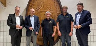 „Es war ein sehr schneller Herbst, weil die Trauben aufgrund der Witterung schnell ihren Reifegrad veränderten und die Fäulnis einsetzte“, so das erste Fazit des geschäftsführenden Vorstandes der Winzergenossenschaft „Deutsches Weintor“ Frank Jentzer zur Weinlese 2023. Beim traditionellen Weinlesegespräch informierten sich Bürgermeister Torsten Blank und Landrat Dietmar Seefeldt beim Fachgespräch mit den Verantwortlichen der Winzergenossenschaft über die Ernte und die erwartete Qualität. Gesprächspartner waren neben Jentzer, der Aufsichtsratsvorsitzende der Genossenschaft Thorsten Schmidt und der stellvertretende Kellermeister Michael Kern.