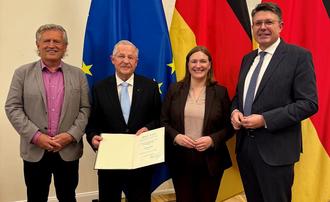 „Unser Land Rheinland-Pfalz ist so stark und vielfältig, weil es auf die Kraft von Macherinnen und Machern bauen kann“, sagte Ministerpräsident Alexander Schweitzer zum Anlass der Verleihung des Verdienstordens. Katharina Binz, die Alexander Schweitzer bei der Preisverleihung vertrat, betonte: „Die heutige Feierstunde bietet die Gelegenheit, Persönlichkeiten zu ehren, die mit ihrem besonderen Engagement einen wertvollen Beitrag für unsere Gesellschaft geleistet haben.“ Zusammen mit der Familie Roth waren auch Verbandsbürgermeister Torsten Blank und Ortsbürgermeister Peter Klein bei der Feierstunde anwesend. „Wir freuen uns mit Herbert Roth und der gesamten Familie über diese große Auszeichnung. Sie würdigt das Lebenswerk eines Vordenkers, der sich neben dem Weinbau, immer auch mit gesellschaftlichen und ethischen Fragen beschäftigt hat. Die Frage, wie können wir nachhaltig leben und wirtschaften und sorgsam mit den Ressourcen unserer Erde umgehen, treibt ihn bis heute um“, so Bürgermeister Blank bei seiner Gratulation an den Geehrten.
