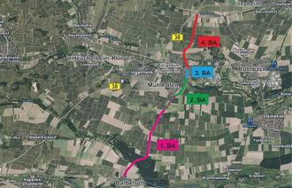 Die Maßnahme ist in vier Bauabschnitte (BA) unterteilt und wird unter Vollsperrung durchgeführt. Die Bauarbeiten beginnen mit dem ersten Bauabschnitt zwischen Barbelroth und Mühlhofen (Einmündung Waldstraße). Die Arbeiten in diesem rund 3.300 Meter langen Bauabschnitt werden voraussichtlich neun Wochen dauern.