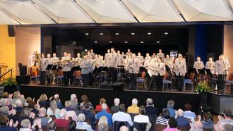 Großer Applaus von den Gästen für die Musikerinnen und Musiker des Heeresmusikkorps Kassel unter der musikalischen Leitung von Tobias Terhardt (M.).