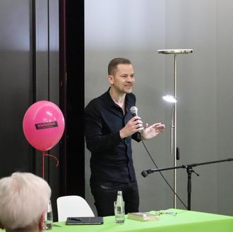 Mit viel Witz und Charme unterhält Kliesch das Publikum. Der nicht nur aus dem Buch las, sondern auch Anekdoten aus seinem Leben erzählte. Mit einem kleinen Sektempfang konnte sich das Publikum in der Pause stärken und sodann in die zweite Hälfte starten. Am Ende der Lesung gab Vincent Kliesch noch einen Ausblick auf Band 5. Auch er signierte am Ende des Abends seine Bücher und ließ sich kreative Widmungen für die Zuschauer einfallen. Alle Besucherinnen und Besucher haben vom Bücherei-Team ein kleines Geschenk erhalten.