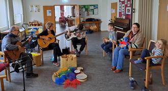 Die musikalische Begegnung am Nachmittag mit Liedern, Instrumenten, Geschichten und Rätseln lädt zum Hören, Singen, Bewegen und Musizieren ein. Die Freude an der Musik steht im Vordergrund und es sind keine Vorkenntnisse erforderlich.