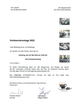 Eine weitere schriftliche, persönliche Einladung zum Kreisseniorennachmittag erfolgt nicht!