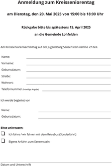 Einladung und Anmeldung zum Kreisseniorennachmittag auf dem Sensenstein am 20. Mai 2025