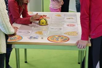Mit den kleinen Bee-Bots konnten Kinder ihre ersten Erfahrungen im Programmieren sammeln und sich so ihre Pizza belegen.