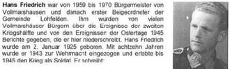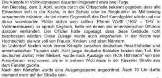 Vollmarshausen war zum damaligen Zeitraum noch eine eigenständige Gemeinde. Hier fanden auch aktive Kampfhandlungen statt. Unser stark verkürzter Auszug aus dem Buch „Ein letztes Mal im Bunker“ soll daran erinnern.