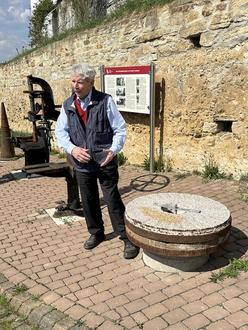 Horst Fehr erklärte, dass in einer Mühle die Körner von Getreide durch zwei Mahlsteine (einer Feststehend, ein Läufer) zu Schrot und Mehl gerieben wurden. „Einen solchen Mahlstein sehen wir hier“, sagte er. Schrot wurde als Futtermittel in der Landwirtschaft genutzt, das Mehl wurde in den örtlichen Bäckereien und in privaten Haushalten verbacken. Der Antrieb erfolgte damals in der Regel durch ein mit Wasserkraft angetriebenes Mühlrad außen am Haus.