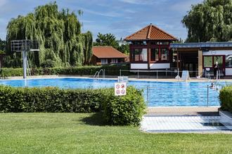 Entspannungssuchende können die Sonne auf der großzügigen Liegewiese genießen und dabei die zahlreichen Annehmlichkeiten des Bades nutzen, darunter ein Volleyballfeld, ein Hüpfkissen für Kinder bis zehn Jahre sowie eine Minigolfanlage. Für das leibliche Wohl sorgt ein gut ausgestatteter Imbiss mit einer breiten Auswahl an Speisen.