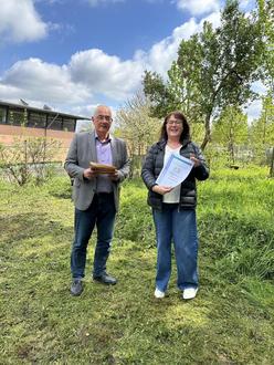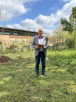 Gewürdigt wurden an diesem Tag auch die engagierten Baumpatinnen und Baumpaten, die sich bereit erklärt haben, sich um die Bäume des Jahres zu kümmern. Sie erhielten die Urkunden von Bürgermeister Uwe Jäger. Familie Heerdt kümmert sich um die Echte Mehlbeere sowie um die Roteiche. Kirstin Döll sorgt für die Traubeneiche.