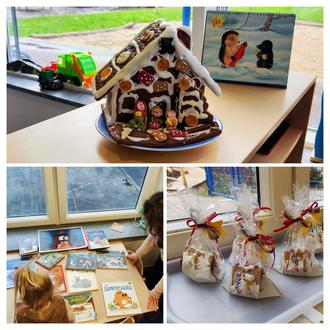 So auch in der Kita „Die kleinen Strolche“. Hier begann die Weihnachtszeit bereits vor dem ersten Dezember, als verschiedene Bastelaktionen in den Gruppen gestartet wurden und ein Weihnachtsbaum vor der Kita aufgestellt und von den Familien mit roten Schleifen geschmückt wurde.