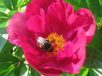 Hummel auf Blüte von Pfingstrose