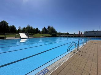 Die ersten Besucherinnen und Besucher des Freibads am Eröffnungstag.
