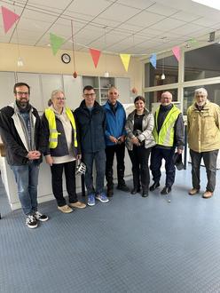 Beigeordnete Bärbel Fehr (r.), Klimaschutzbeauftragte Ursula Paul (2.v.l.), Schulleiter Arno Scheinost (3.v.l.), Mobilitätsbeauftragter der Söhre-Schule, Simon Dölle (l), Radverkehrsbeauftragte Lohfelden, Angelina Sporn (3.v.r.), Dirk Gertenbach (2.v.r.) vom Fachbereich 3 der Gemeinde Lohfelden sowie Gerhard Caspar (M.) und Walther Meiß (r.) von der Lokalen Agenda Umwelt- und Naturschutz begrüßten die Radlerinnen und Radler vor dem Start.