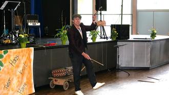 Zwischen den musikalischen Auftritten präsentierte „Gerd der Gaukler“ alias Gerhard Miehlke dem Publikum lustige Jonglierkunststücke und ließ den Hexenbesen fliegen. Dabei gewann er, mal virtuos tollpatschig, mal hintergründig komisch und manchmal mit Eleganz, schnell die Herzen des Publikums.