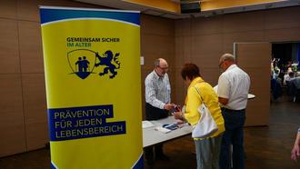 Seniorenberater Michael Friedrich (l.) informierte die Gäste im Bürgerhaus-Foyer rund um die Sicherheit im Alter.