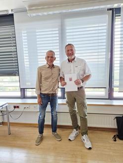 Der neue Ortsgerichtsschöffe, Reiner Franz (r.), wurde am 25. Juni vom stellv. Präsident des Amtsgerichts Kassel, Dr. Philipp Gescher, auf sein Amt vereidigt.