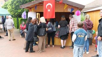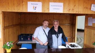 Getränkestand des Ausländerbeirates, links Salih Göktan.
