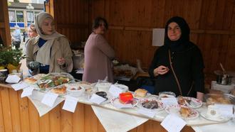 Albanische Spezialitäten vom Islamisch-Albanischen Kulturzentrum, rechts Urim Dervishi.